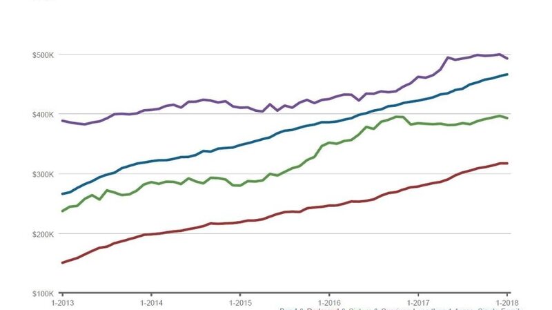 However, the growth in Central Oregon has pushed single family residential home prices in Redmond higher since coming out of the recession in 2012. In fact, over the past five years, home prices in Redmond have doubled with the average sold price now over $300,000.