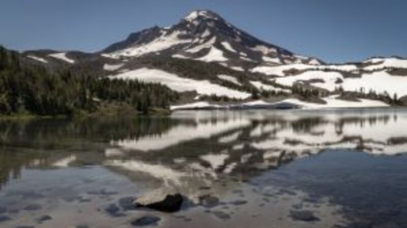 We have lived in Central Oregon since 1985, but during this entire time we have never hiked to Camp Lake. The start of this hike is located just outside Sisters off McKenzie Hwy on Forest Road 15 at the Pole Creek Trailhead. The hike into Camp Lake covers 7.1 miles (14.2 miles round trip), the first 4 through a burned forest, the result of 2017's Milli Fire. However, it is interesting to see how new plant growth is returning in the burned area. And the open areas provide for wonderful views of both Middle and North Sister.