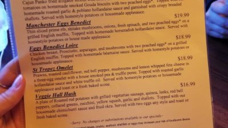 Every time we venture to The Victorian Café we comb through the menu - should we get the breakfast burrito? Any of the benedicts? Maybe some pancakes? Not this time! The specials' menu, which is swapped out regularly, caught our fancy.
