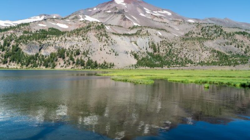 The trail opens at Canyon Meadow, which survived the 2003 fire unscathed. Canyon Creek runs through the meadow and during the summer, the blooming wildflowers, the sound of the creek and the beauty of towering Three Fingered Jack create an unparalleled Wilderness experience.