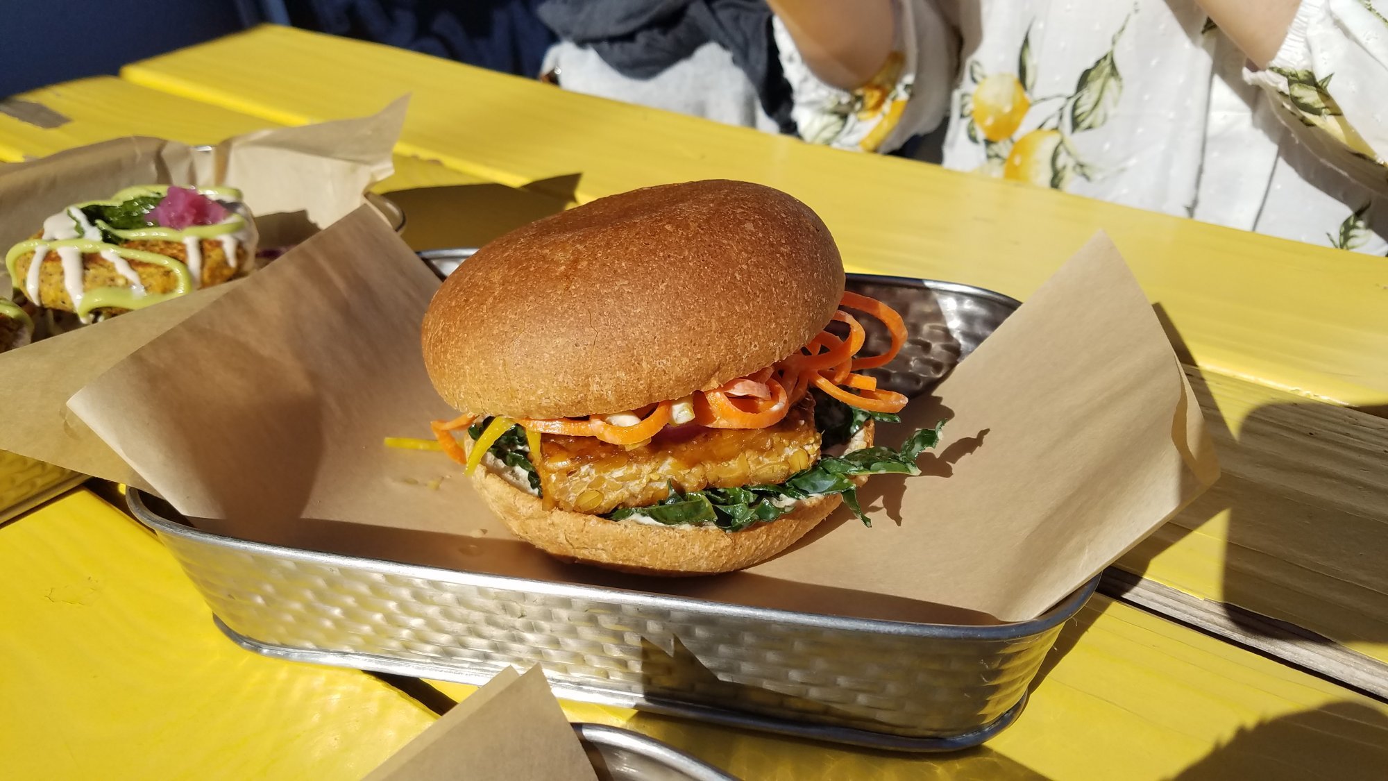 When it came to our second sandwich, the Sesame Dijon Tempeh, we loved every bite! The patty popped with the tanginess that comes with a Dijon glaze; it was firm yet perfectly moist on the inside, not dry at all! The flavor combination between the yuzu vinaigrette, chopped kale, sumac marinated onion created a merry symposium that will tickle your taste buds and appease your need for a slight crunch! We were very impressed with this vegan sandwich as well!
