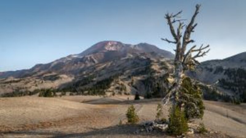 We started our hike at Devil's Lake off Cascade Lakes Highway at 6:45 am. The first mile and a half was in wooded old growth forest, but the trail climbed steeply through the hemlocks and opened up once we reached the plains overlooking Moraine Lake. There the view of South Sister became prominent. Even that early in the morning we met people coming down from the mountain, having enjoyed watching the sunrise from the peak.