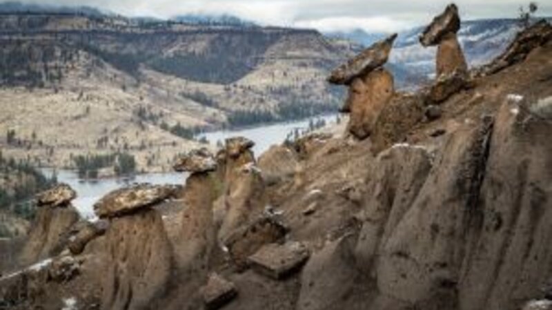 Not really a hike (1/2 a mile round trip), the Balancing Rocks (called hoodoos) can be located by driving all the way through the park past the airport toward the Perry South Campground. When forest service road 64 turns into a dirt road, travel just a short distance until you find the parking lot for the short walk to Balancing Rocks. The rocks were formed when a layer of harder volcanic rock flowed over a softer layer of volcanic rock. Over many thousands of years, the underlying softer rock has eroded at a faster rate than the overlying harder rock, thus forming the balancing rocks we see today. This is worth the extra drive to see such an unusual geological formation.