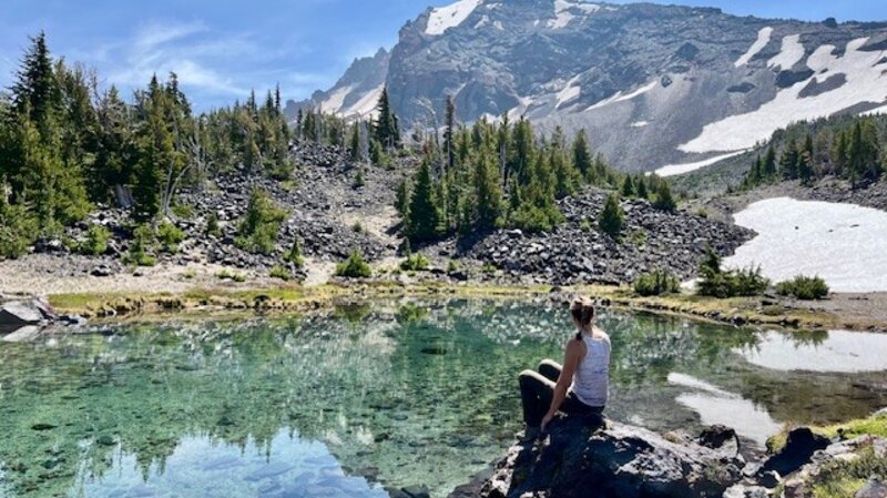 There are hidden treasures in the Three Sisters Wilderness which can be found for those willing to leave the path and follow a compass or GPS to locate them. In particular, there are several beautiful tarn lakes located roughly a half mile off the Green Lakes trail which connects the Green Lakes valley with Park Meadow over the pass between South Sister and Broken Top. There is no path to these lakes, but people good with following a downloaded map can find them. The first four lakes can mirror views of South Sister and their general location can provide views toward Golden Lake as well.